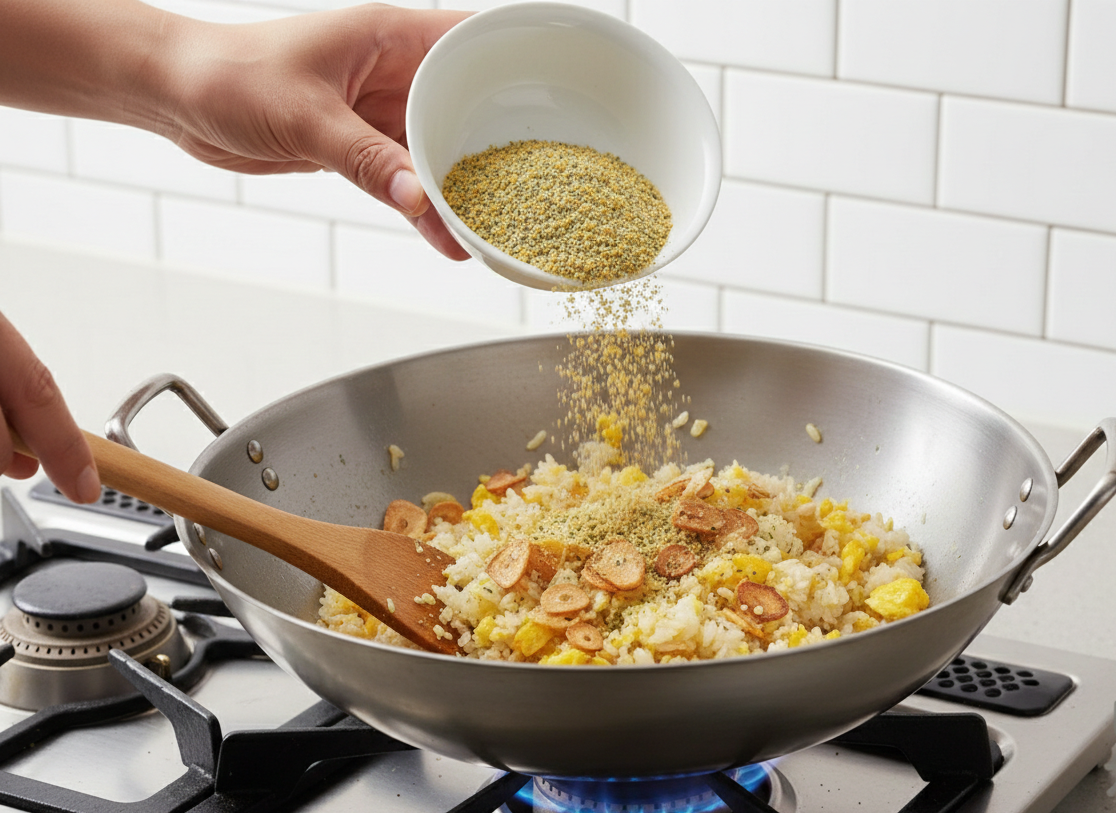 ガーリックライスシーズニング 【依頼内容/商品紹介】 OEMのご依頼をいただき製造させていただきました。 塩・ガーリックをベースにオニオン・胡椒・パセリなどをブレンドした調味料です。 【導入実績】 食品小売店 【こだわったポイント】 ベースは塩とガーリックというシンプルなだからこそ、味のバランスにこだわりました。 【導入効果】 味のご評価をいただいています。