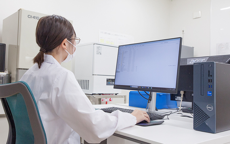 実際に工場からサンプルをもらい、微生物規格に沿った商品ができているかを定期的に検査をしています。