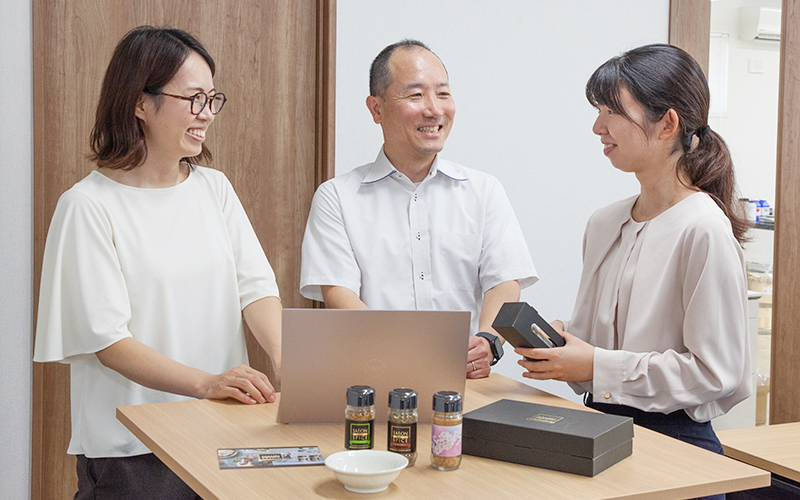 ある時、「新メニューの坦々麺に合うスパイスが欲しい」と相談を受けたのは入社1年目の女性社員。さっそく直属の上司と社長の3人で、どんなスパイスにするか検討を開始。